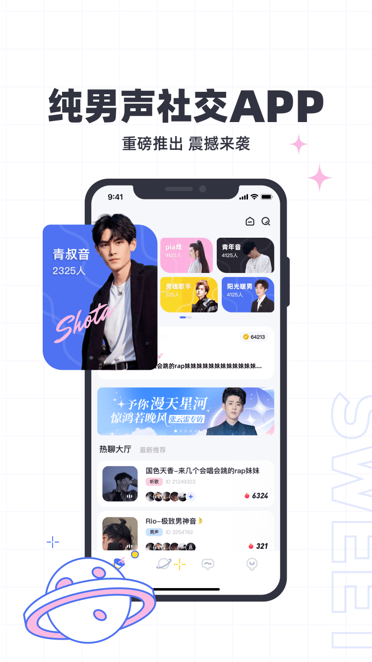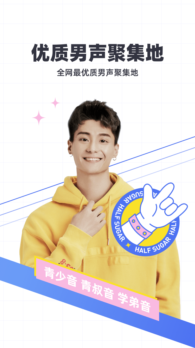 半糖是一款专为女性用户打造,满足高质量社交需求的纯男声语音社交APP。平台严格标准3层筛选,致力汇聚全网最优质男声